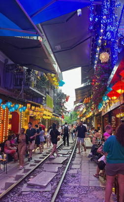 I Train Street går jernbaneskinnene bokstavelig talt bare noen centimeter fra veggene, og to ganger om dagen passerer et fullt fungerende tog gjennom den trange gaten - ofte bare noen centimeter fra kafébord, planter og tørkesnorer.